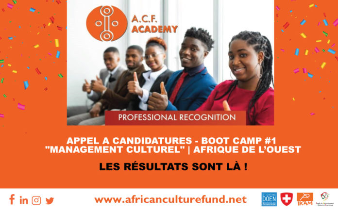 Le Fonds Africain pour la Culture, dans un communiqué de presse en date du 14 octobre 2021 a annoncé la proclamation des résultats du 1er Appel à candidatures du programme ACF ACADEMY dont le BOOT CAMP 1 est consacré au « Management culturel ».