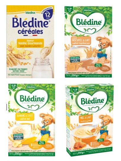 Les références concernées sont : Blédine croissance céréales vanille et lait 12 mois (étui 400 g), Blédine biscuit dès 6 mois (400 g). Seuls certains lots identifiés par leur numéro et date de durabilité sont visés par le rappel.