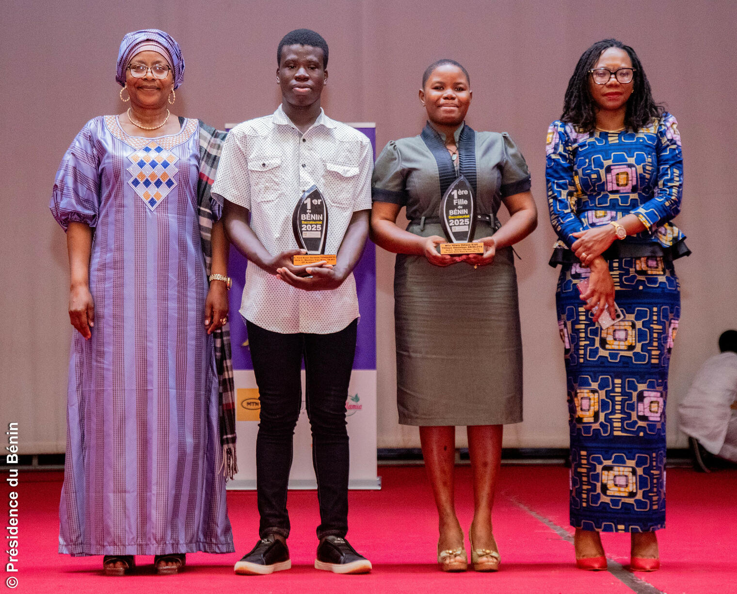 Des bourses d’études ont également été offertes afin de soutenir la poursuite de leur formation. Les deux meilleurs au plan national, une jeune fille et un jeune homme, ont reçu des récompenses exceptionnelles : une parcelle à Abomey-Calavi et un chèque de 500 000 F CFA chacun.