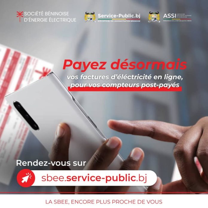 Ce nouveau service de paiement en ligne permettra à plus de 362.000 clients de pouvoir aisément et en toute quiétude s’acquitter de leurs factures d’électricité vis-à-vis de la SBEE, à distance et en toute quiétude. Les ménages ont désormais juste besoin d’un smartphone ou d’un ordinateur connecté à internet puis d’un moyen de paiement électronique tel qu’un compte mobile money (MTN ou Moov) ou une carte bancaire.
