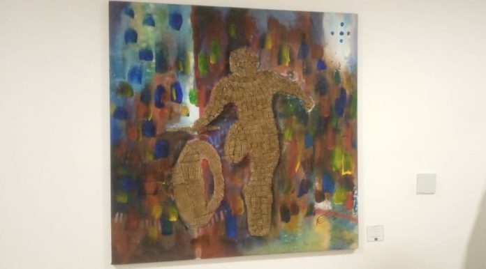 Moubarak Seidou expose quant à lui la roue incarnée et le tourbillon de l’enfance. Cette exposition traduire ce vent violent qui accompagne la roue quand elle est en marche.