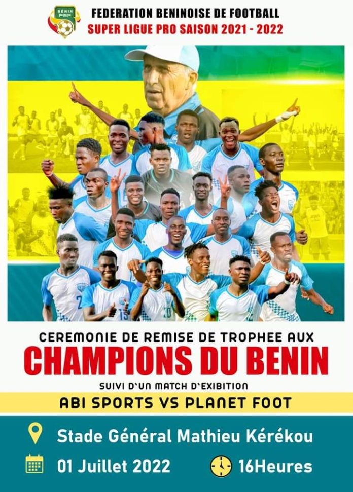 Cette cérémonie de remise de trophée se tiendra donc le vendredi 1er juillet 2022 à 16 h au stade Général Mathieu Kérékou. Un match d’exhibition est prévu pour la même occasion entre Abi Sports et Planète foot.