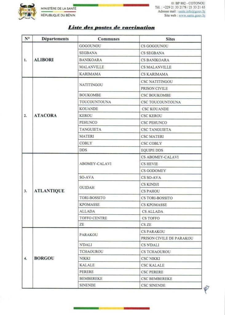 De 78, le nombre de centres dédiés à la vaccination contre la covid-19 est passé désormais à 115 couvrant l’ensemble du territoire national. Voici l’intégralité de la liste :