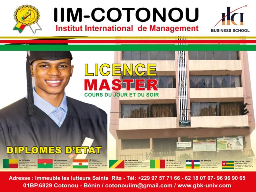 L’Institut International de Management-Cotonou est joignable au + 229 97 57 71 66 ou + 229 62 18 07 07