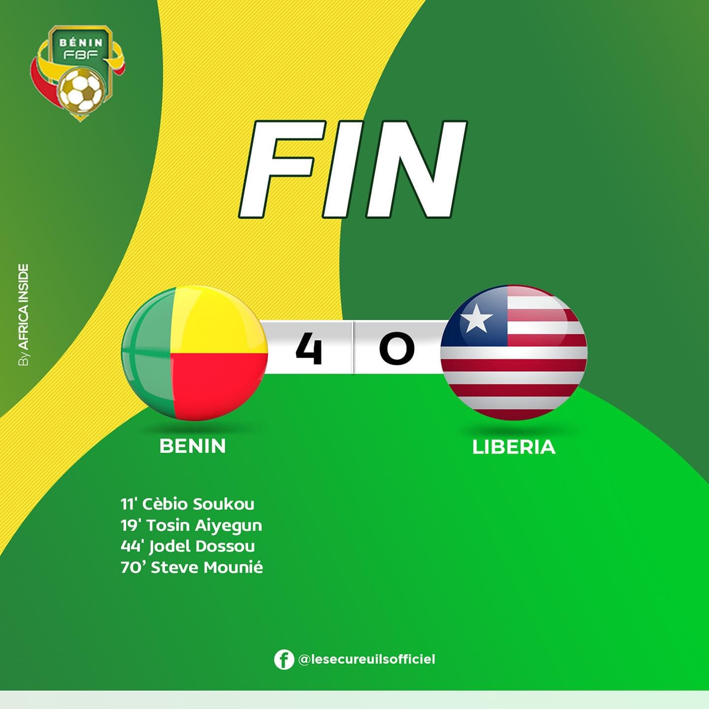 Déjà à la 12e minute de jeu, Cebio Soukou sur une frappe n’a accordé aucune chance au portier libérien de stopper le cuir rond. 1 – 0, le Bénin venait d’ouvrir le score. Première sélection, premier match, le néo-Écureuil Tosin Aiyegun inscrit son premier but sous les couleurs béninois et le deuxième pour la rencontre. Le Clermontois, Jodel Dossou aggrave la situation en inscrivant le troisième but. Avec 3 – 0, les 22 acteurs furent renvoyer au vestiaire après les 45 premières minutes de jeu.