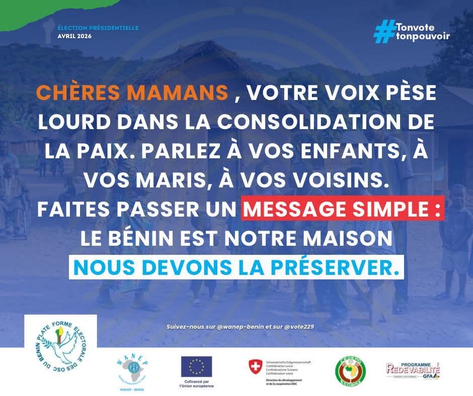 Porté par des organisations de la société civile, dont WANEP Bénin, ce message interpelle directement les “chères mamans”, considérées comme des actrices clés de la paix notamment en ces période d’élection présidentielle.