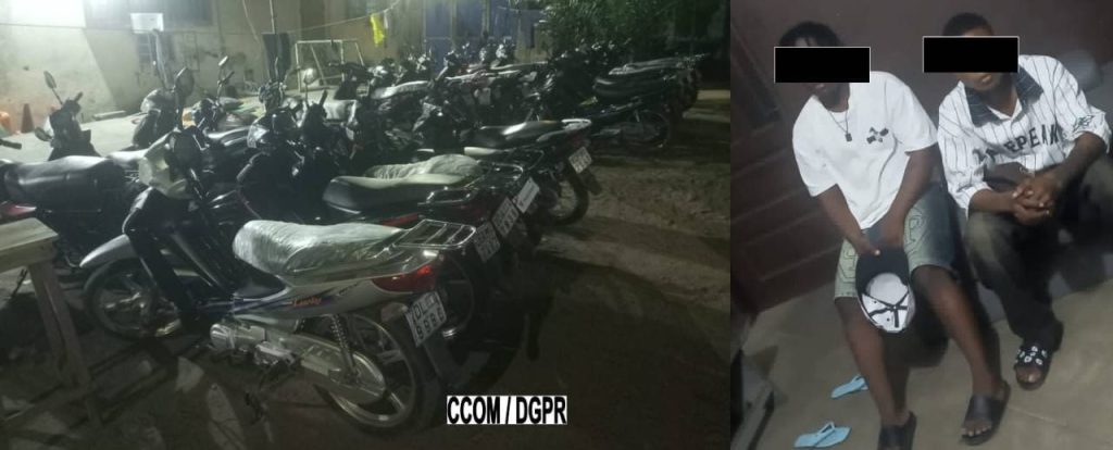 Placés en garde à vue, les deux jeunes seront présentés le jeudi 05 mars 2026 au Procureur de la République près le Tribunal de première instance de première classe de Cotonou. Leurs motocyclettes ont été saisies à titre conservatoire.