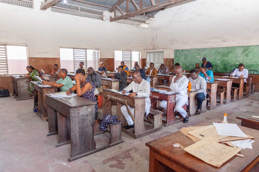 1070 candidats, dont 20% de femmes, passent des tests écrits avant des entretiens avec un jury international pour le recrutement des enseignants des Universités Publiques du Benin. Un processus inédit.